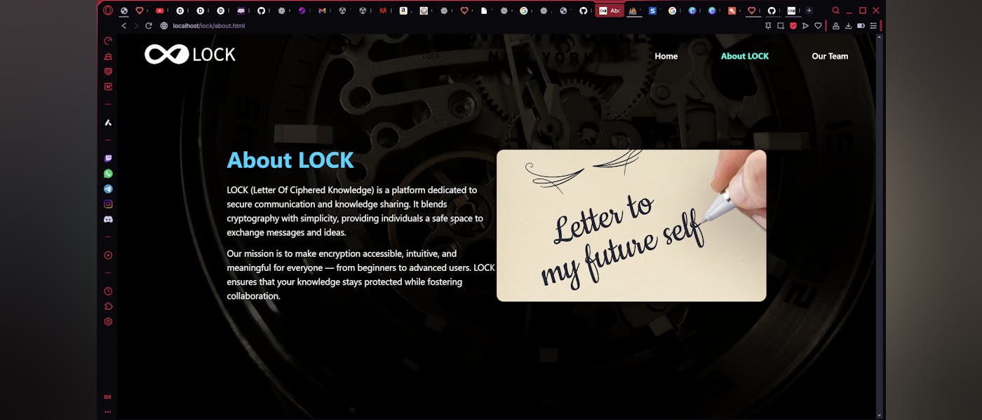 LOCK (Letter Of Ciphered Knowledge) is a website that lets you write a message to your future self, lock it with a password, and set a delivery time. The letter stays hidden until the chosen date and can only be unlocked by you with the right password — making it a secure and meaningful way to preserve your thoughts, goals, or feelings for the future.